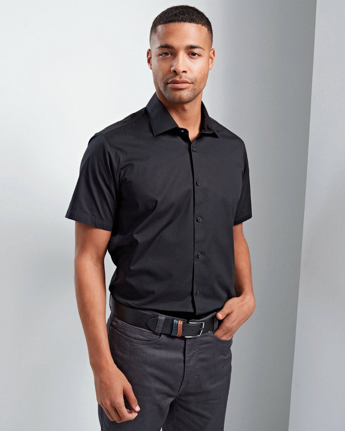 PR246 MENS STRETCH FIT COTTON POPLIN SHORT SLEEVE SHIRT - XS / BLACK is backordered and will ship as soon as it is back in stock.