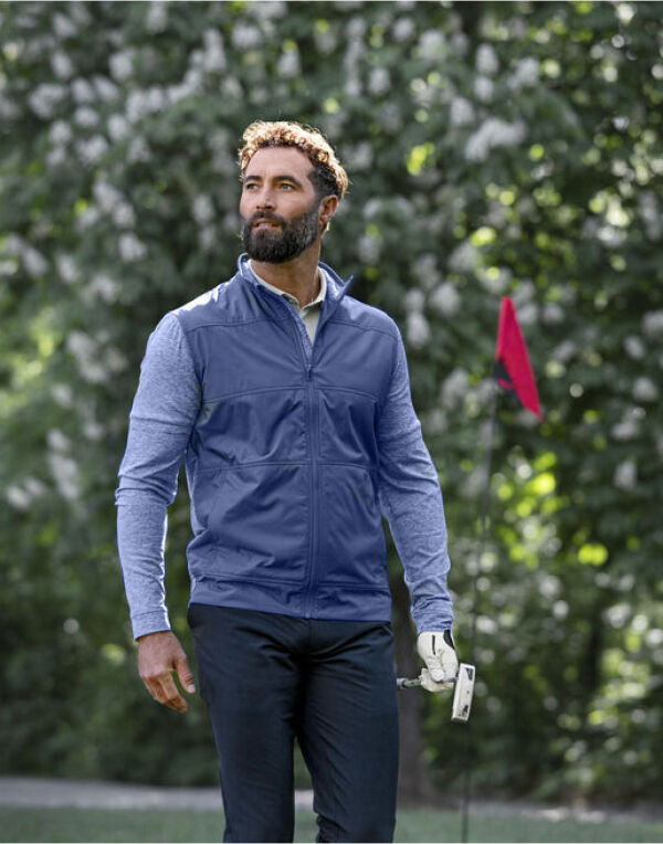 The Stealth Jacket is a modern hybrid design that seamlessly merges the comfort of a sweatshirt with the functionality of outerwear. Perfect for both casual and active settings, it features a woven vest front for wind protection and lightweight warmth, while the back and sleeves are crafted from stretch soft fabric for flexibility and comfort. The breathable, moisture-wicking CB DryTec fabric keeps you dry during activity, making it ideal for layering over shirts or polos.