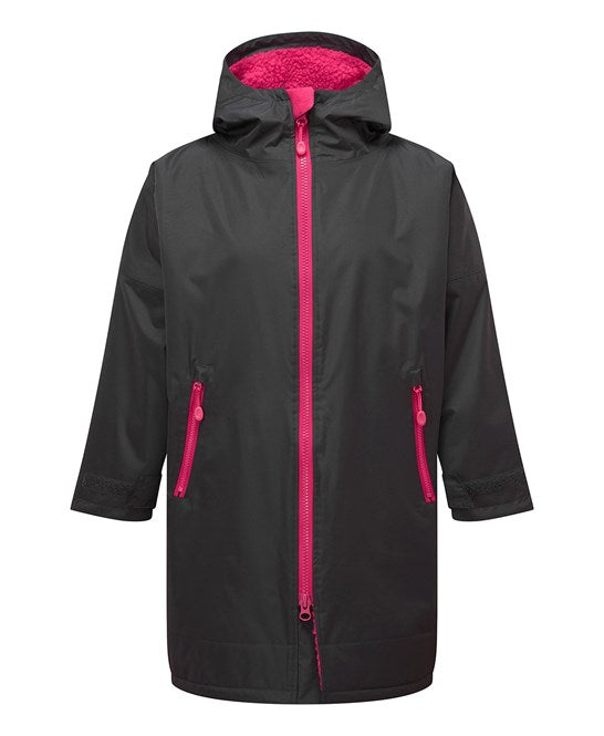 The Kids TriDri® All-Seasons Waterproof Changing Robe is designed to keep children warm, dry, and comfortable during outdoor adventures. Featuring a waterproof and windproof outer shell (5000/5000 rating) with taped seams, this robe protects against rain and harsh weather. Inside, the soft sherpa and polar fleece lining provides exceptional warmth while absorbing moisture, making it perfect after swimming, water sports, or rainy sports practice.